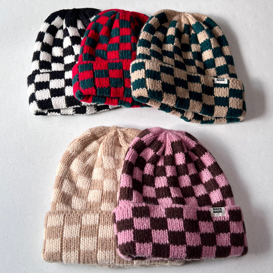 Checkered Knit Beanie
